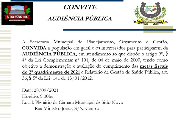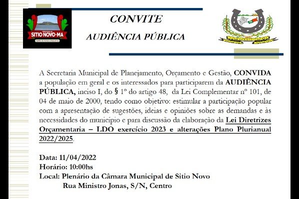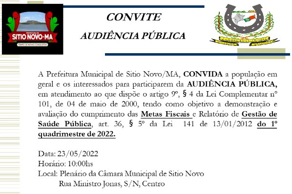 A Prefeitura Municipal de Sitio Novo/MA, CONVIDA a população em geral e os interessados para parti...