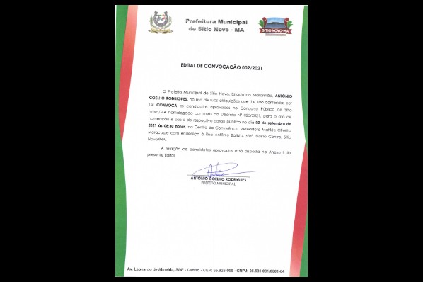 EDITAL DE CONVOCAÇÃO Nº. 001/2021 CONCURSO PÚBLICO Nº. 001/ 2020. O...