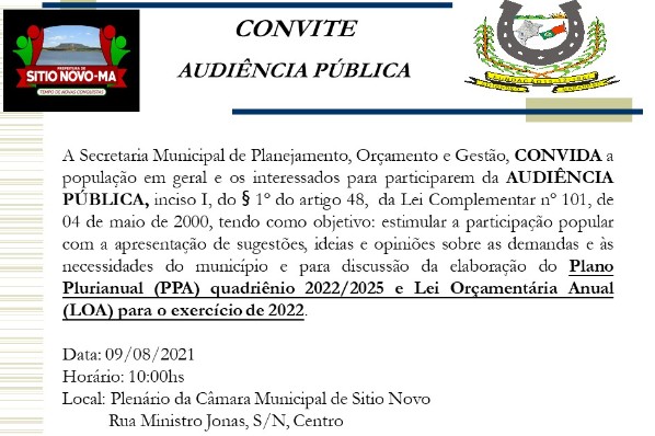 CONVITE AUDIÊNCIA PÚBLICA A Secretaria Municipal de Planejamento, Orçamento e Gestão, C...