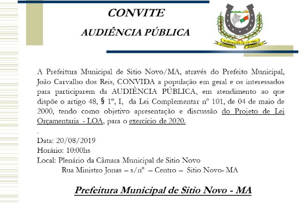 A Prefeitura Municipal de Sitio Novo, do Estado do Maranhão, pessoa jurídica de direito público, d...
